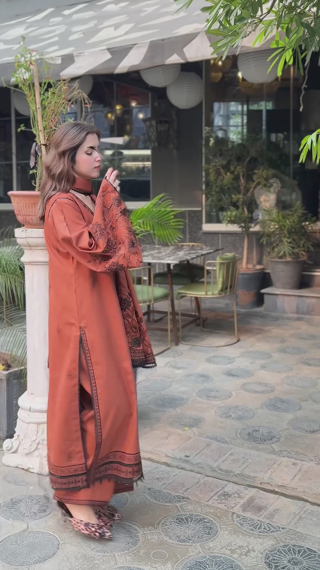This Embroidered Suit combines elegance and intricate craftsmanship. The suit features a dhanak shirt embroidered on the front, back, and sleeves, enhanced with extensive embroidered pattis on the slit, sleeves, and front & back adding refined detail. Complementing the shirt, the dhanak trousers with embroidered patch are beautifully. while emboss velvet shawl completes the ensemble with graceful sophistication. Ideal for occasions where style and quality are paramount.